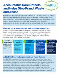 Download our fact sheet to learn more about the role ACOs play in detecting and stopping fraud, waste, and abuse, as well as actions the Centers for Medicare and Medicaid Services can take to better partner with ACOs in the fight against bad actors.